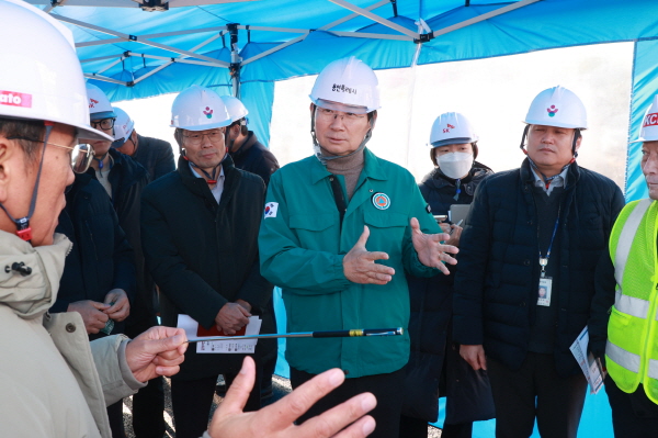 보개원삼로 확·포장 공사 현장에서 이 시장은 공사 추진 현황을 보고받고, 확장된 차로 폭, 우회도로 운영, 교량 신설부 시공 현황 등을 꼼꼼히 확인하며 관계자들을 격려했다.