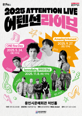 용인문화재단(이사장 이상일)은 오는 5월 24일(토) 오후 5시, 용인시문예회관 처인홀에서 《2025 어텐션 라이브》의 첫 번째 공연 ‘ONE fine Day’를 개최한다.