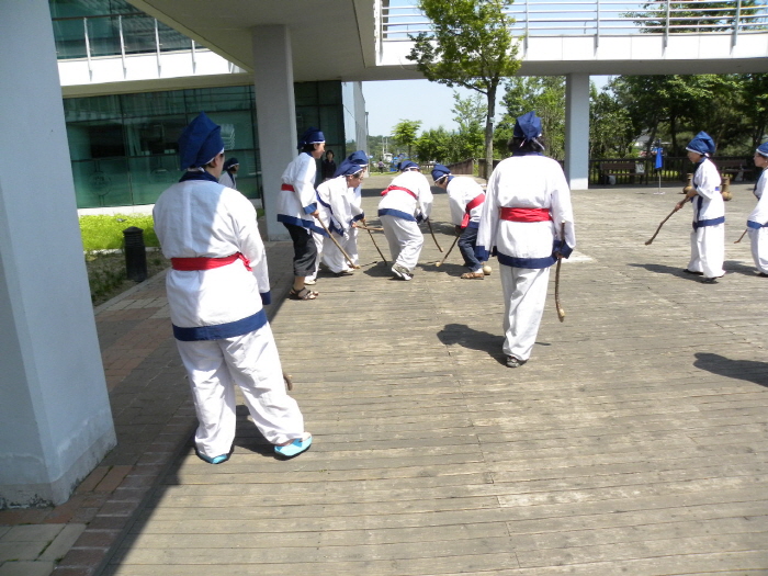 지난 6월16일 용인시 처인구 용인문화예술원 야외무대에서 전통놀이 자격증반 수업(장치기)을 이론과 실습을하며 온몸을다마쳐 청팀과홍팀 선수들을 똑같이 나눠 경기를 시작하였다.