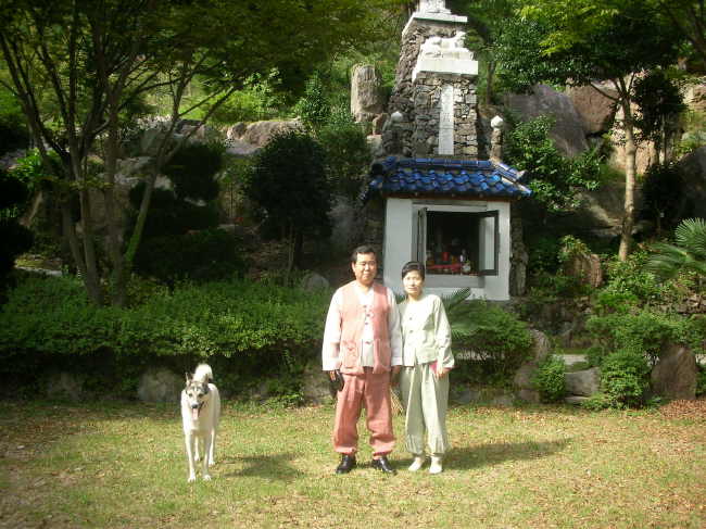 경남고성에 있는 천비룡사에서 통일기원 지장대불 조성불사 앞에서 기도를 한후 기념촬영을하였다.