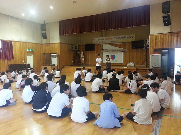 찾아가는 전통놀이체험을 경기도 성남시에 있는 수진중학교 학생 250여명을 전통놀이 체험