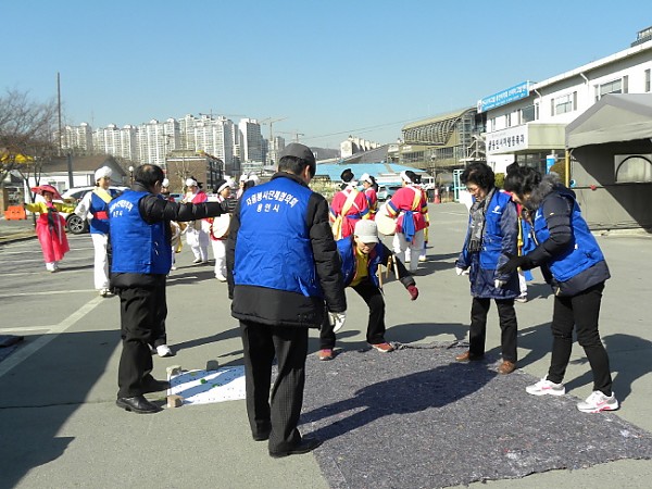 또한 봉사자들의 흥을 돋구기위해 사) 누리전통문화보존회에서 예술단원20여명이 참석해 흥겨운 지신밟기로 풍물공연을 선사했다.