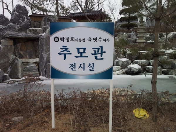 입구엔 고 박정희대통령,육영수여사 추모관 전시실이라고 적혀있는 표지판을 보았다.