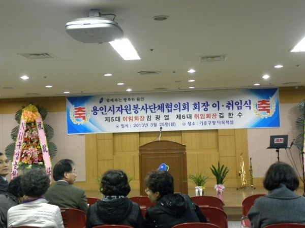 지난 3월25일 용인시 자원봉사단체협의회 회장 이,취임식을 기흥구쳔 다목적실에서 성황리에 개최되엇다.