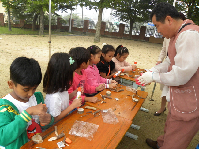 지난 5월24일 용인시 처인구 청소년수련관에서 매헌초등학교 워크샾에서 전통놀이체험(승경도,쌍륙,저포,화가투,참고누,솟대)를하며 놀이체험을 하면서 직접 솟대도 만들어보며 처음해보는놀이즐거워하며 하고잇다.