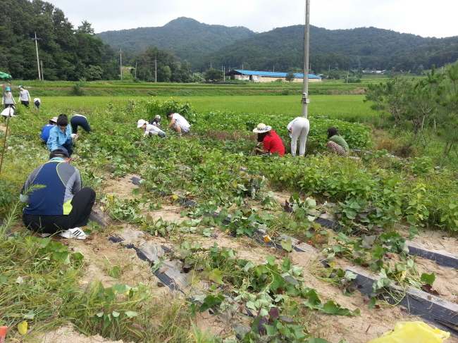 지난 8월17일 푹푹 찌는 불볕더위에 용인시 백암면 가좌리 100-1 번지 고구마 밭에서 www.1365.go.kr 자원봉사 사이트에 접수한 청소년과 성인들 대상으로 농총일손 돕기를 하였다. 인쇄 주소