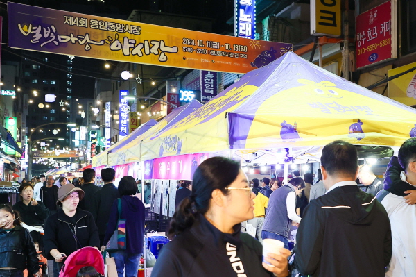용인특례시(시장 이상일)가 후원하고 용인중앙시장 상인회가 주관하는 ‘제4회 용인중앙시장 별빛마당 야시장’이 11일 오후 개장했다. 야시장은 13일 저녁까지 열린다.