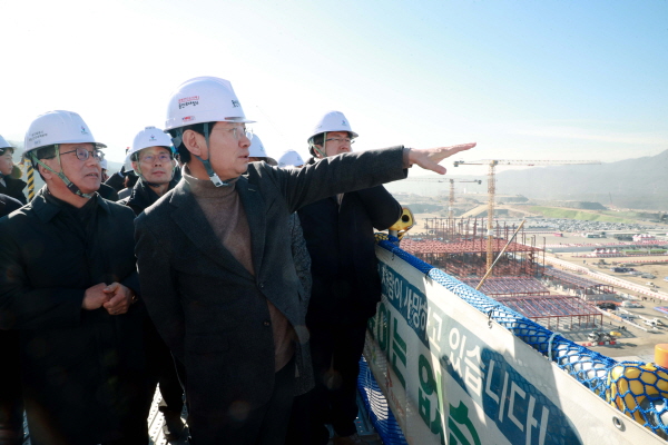 회의 이후 참석자들은 SK 관계자들과 함께 일반산업단지 내 1기 팹(FAB) 공사 현장을 방문해 공사 추진 상황을 확인하고, 현장 관계자들의 건의 사항을 청취했다.