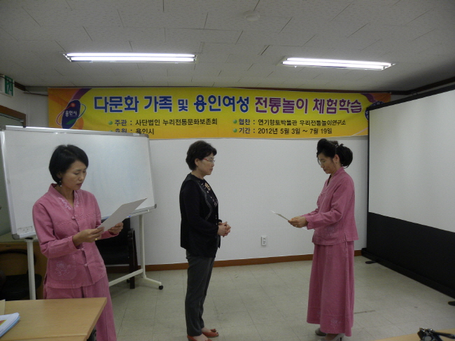 사)누리전통문화보존회에서는 지난 5월3일 다문화가족 및 용인여성 전통놀이체험을 용인여성발전기금의 일환으로 4개월간 조선시대의 놀이 (승경도,쌍륙,저포,화가투 등 ) 를 체험 실습하고 9월27일 오후 2시 차량등록사업소 2층 교육실에서 전통놀이 수료식을 열었다. 별점주기 0.0점 / 0명 ( 0점 / 0명 ) 10.0점 / 1명 10점 8.0점 / 1명 8점 6.0점 / 1명 6점 4.0점 / 1명 4점 2.0점 / 1명 2점 ※ 비회원도 별점 가능 인쇄 주소 Tweet