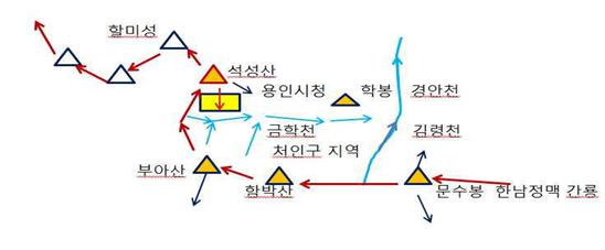 <용인지역 용맥 환포 지형도>