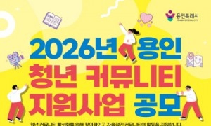 - 2월 18일까지 18~39세 청년 3명 이상으로 구성된 모임 10팀 모집 총 1500만 원 활동비 지원 -용인특례시(시장 이상일)는 2월 18일까지 ‘청년 커뮤니티 지원사업’에 참여할 10개 팀을 모집한다고 29일 밝혔다.대상은 용인에 주소를 두거나 지역에서 활동하는 18~39세 청년 3명 이상으로 구성된 모임이다.시는 문화예술, 자기 계발, 사회공헌, 취·창업 등 청년들이 자유롭게 활동 주제를 선정해 사업을 기획하고 실행할 수 있도록 지원…