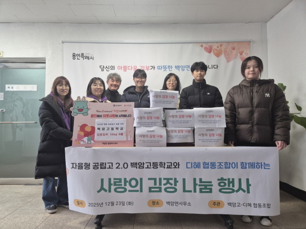 백암고등학교(교장 전태창)는 같은 날 학생들과 함께 김장한 김치 9통을 전달했다.