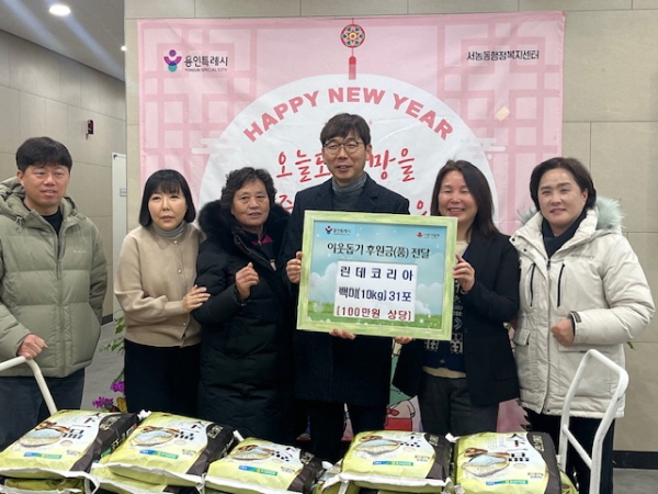 서농동 주민자치위원회와 린데코리아는 지난 8일 각각 성금 100만 원, 백미 10㎏ 31포(약 100만 원 상당)를 서농동에 기탁했다.