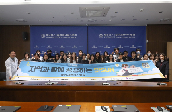 이날 김은경 용인세브란스병원장의 특강을 시작으로 의사, 간호사, 방사선사, 임상병리사 등 주요 병원 직종에 대한 설명이 진행됐다. 이어 학생들은 2개 조로 나뉘어 병원 시설을 둘러보며 의료 현장의 운영 과정을 살펴보는 시간을 가졌다.