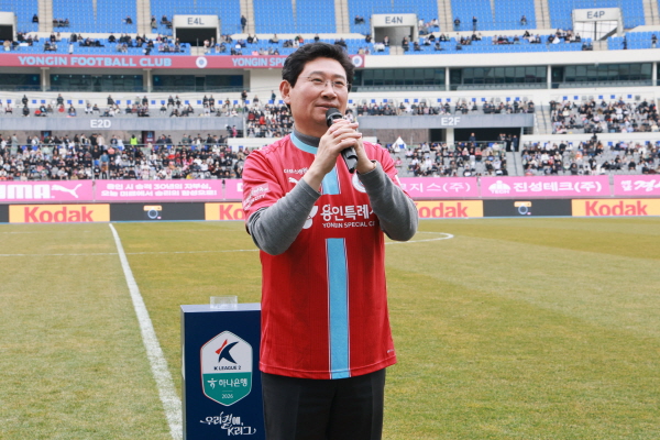 이상일 시장은 경기 시작에 앞서 축사를 통해 “오늘은 대한독립 만세를 외쳤던 3.1운동 107주년이 되는 날이자, 용인군이 시로 승격한지 30주년이 되는 뜻깊은 날”이라며 “이처럼 역사적인 날에 용인FC가 홈 개막전을 하게 돼 매우 감격스럽다”고 말했다.