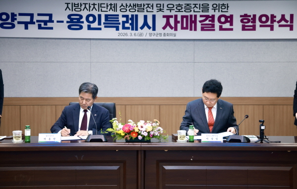 용인특례시(시장 이상일)는 6일 강원특별자치도 양구군(군수 서흥원)과 자매결연을 하고, 두 도시의 교류와 발전을 위해 적극 협력하기로 했다.