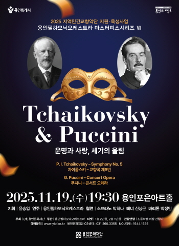 용인문화재단(이사장 이상일)은 오는 11월 19일(수) 오후 7시 30분, 용인포은아트홀에서 용인필하모닉오케스트라(지휘 윤승업) ‘Tchaikovsky & Puccini <운명과 사랑, 세기의 울림>’ 공연을 개최한다고 밝혔다.