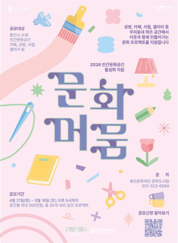 용인문화재단은 오는 5월 16일까지 ‘민간문화공간 활성화 지원사업 <문화머뭄>’의 참여 공간을 모집한다고 밝혔다. 지난해 25개소 공간에서 203회의 프로그램을 운영하며 2,101명의 시민 참여를 이끌어낸 ‘문화머뭄’ 사업은 올해 재단 자체 재원을 매칭하여 총 25개소의 민간문화공간을 선정하고, 공간별 최대 300만 원까지 프로젝트 운영비를 지원할 예정이다.