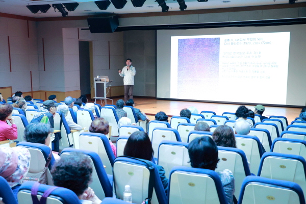 이상일 시장은 이날 ‘한국의 초고가 미술품과 화가들 스토리’를 주제로 김환기, 이중섭, 박수근 등의 작품 해설과 함께 작품이나 화가와 관련한 여러 일화를 이야기했다.
