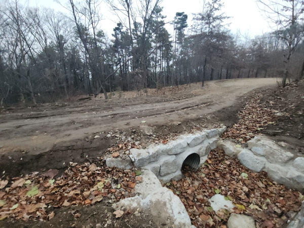 남동 임도는 강우 시 반복적으로 물이 넘치던 구간에 배수관로를 신설하고 노면을 정비해 우천 시 보행자와 차량 통행 불편을 해소했다.