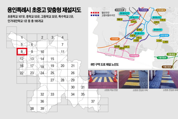 '맞춤형 학교 제설지도’는 이상일 시장의 지시로 겨울철 눈이 내릴 때에 대비해 시가 초·중·고교 주변 도로에 대해 신속하고 효율적인 제설을 하기 위해 만든 것이다.