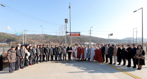 행사에는 이상일 시장과 용인 불교사암연합회 정호스님을 비롯해 지역의 불교계 인사와 신도 등 약 50여명이 모여 명예도로명판 제막식을 축하하고, 역사적 의미를 기리는 시간을 가졌다.