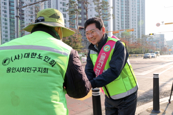 이상일 용인특례시장은 20일 아침 처인구 함박초등학교에서 등굣길 교통지도 봉사활동에 참여하고 주변 통학환경과 교통안전 시설을 점검했다.
