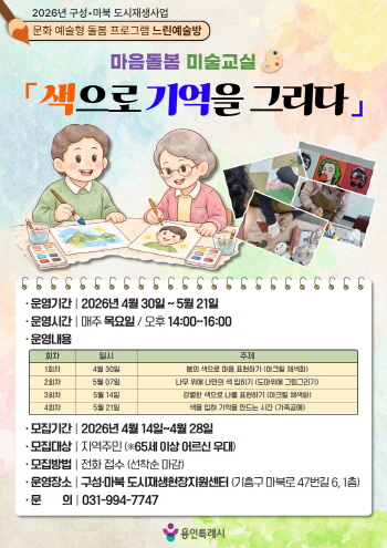 - 생태·환경을 주제로 가족 숲놀이 운영, 시니어를 위한 디지털 문해 수업도 -용인특례시(시장 이상일) 서농도서관은 오는 5월 가정의 달을 맞아 다양한 세대를 아우르는 프로그램으로 이뤄진 ‘2026년 5월 독서문화행사’를 마련했다고 21일 밝혔다.5월 2일부터 23일까지 매주 토요일 오전 10시에는 어르신의 디지털 문해력 향상을 위한 ‘시니어를 위한 스마트…