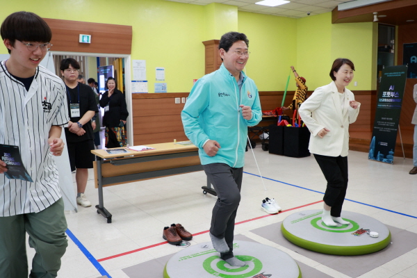 이상일 시장은 20여 개의 부스를 둘러보며 관계자들을 격려하고, AI 오목, ICT 러닝, AI 포토 부스, 모션 챌린지 등 다양한 프로그램을 직접 체험하며 축제에 참석한 청소년들과 소통했다.