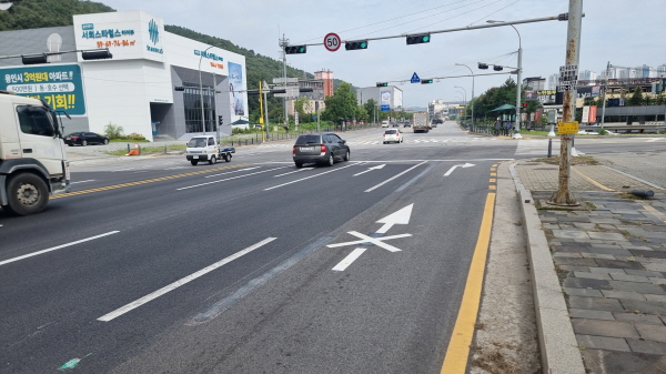 무수교삼거리에는 우회전 차로가 신설됐으며, 고림지구 진입삼거리는 국도 45호선과 고림지구 간 통행량 분산을 위해 신규 교차로를 설치해 지역 접근성과 안전성이 향상될 전망이다.