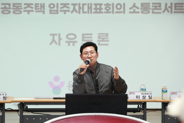 이상일 용인특례시장은 19일 오후 기흥구청 다목적홀에서 지역 34개 공동주택 입주자대표 44명과 ‘입주자대표회의 소통콘서트’를 열고 단지별 문제나 불편을 개선하는 방안 등을 논의했다.