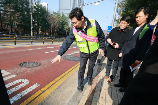 이 시장은 또 시가 예산을 투입해 재정비한 학교 앞 어린이보호구역과 LED 바닥신호등을 살폈다.