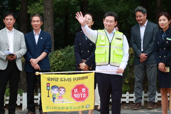 이 시장은 교통지도 봉사 현장에서 녹색어머니회와 학부모회 회원들을 격려하고, 어린이들이 안전하게 횡단보도를 건널 수 있도록 직접 교통지도를 실시했다.